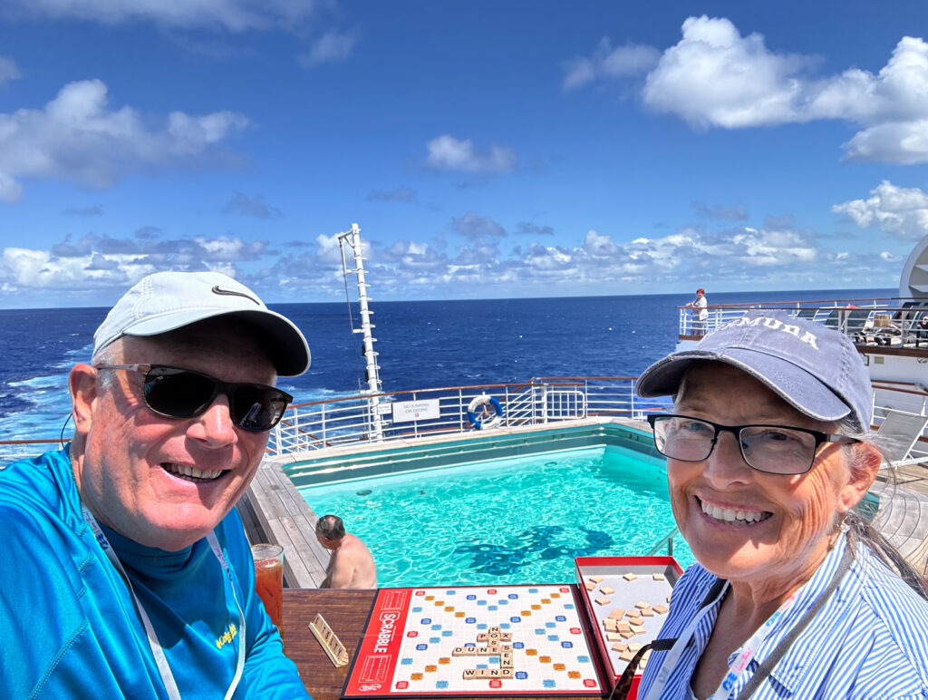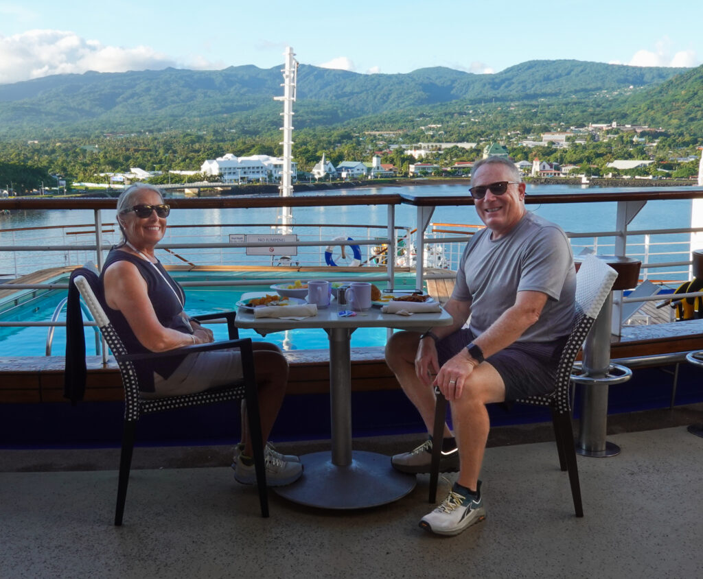 Once we finished at our last port of call Moorea, Tahiti we had 8 sea days to relax and have fun on the ship and relax… Mike continued to work on his blogging and Joanne found some dance classes and craft projects on board that she enjoyed… Being 2 people usually on the travel go this down time definitely boded well for us.