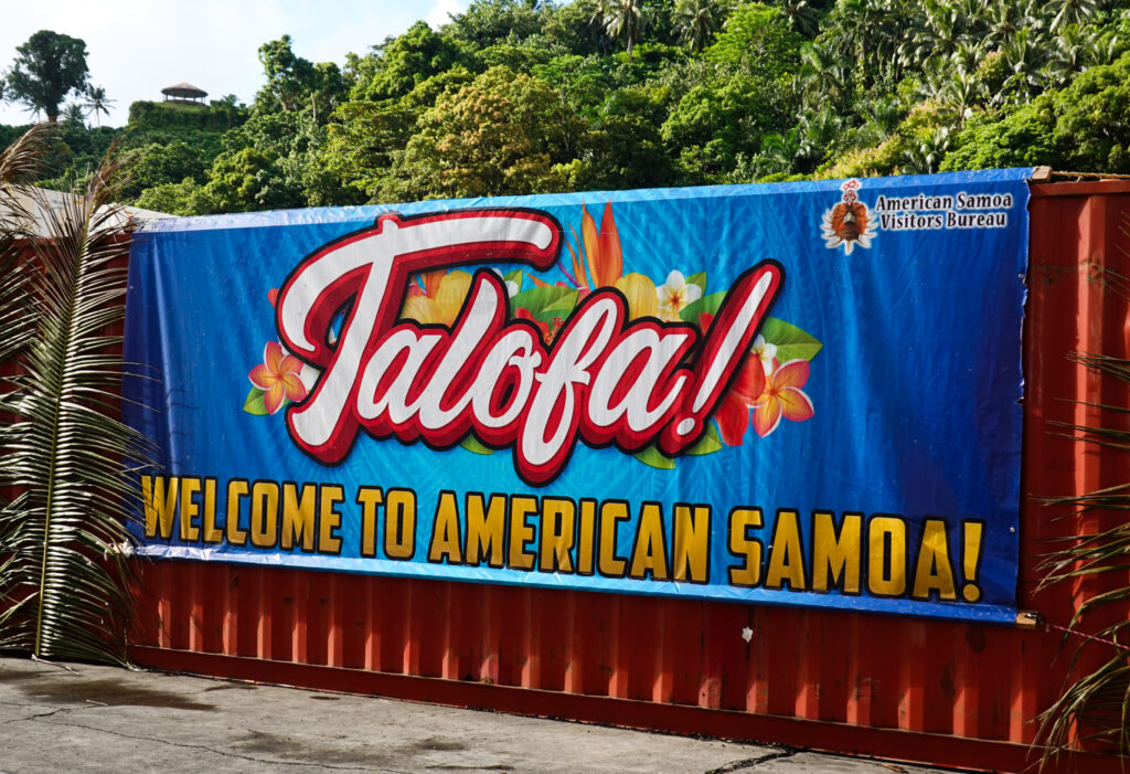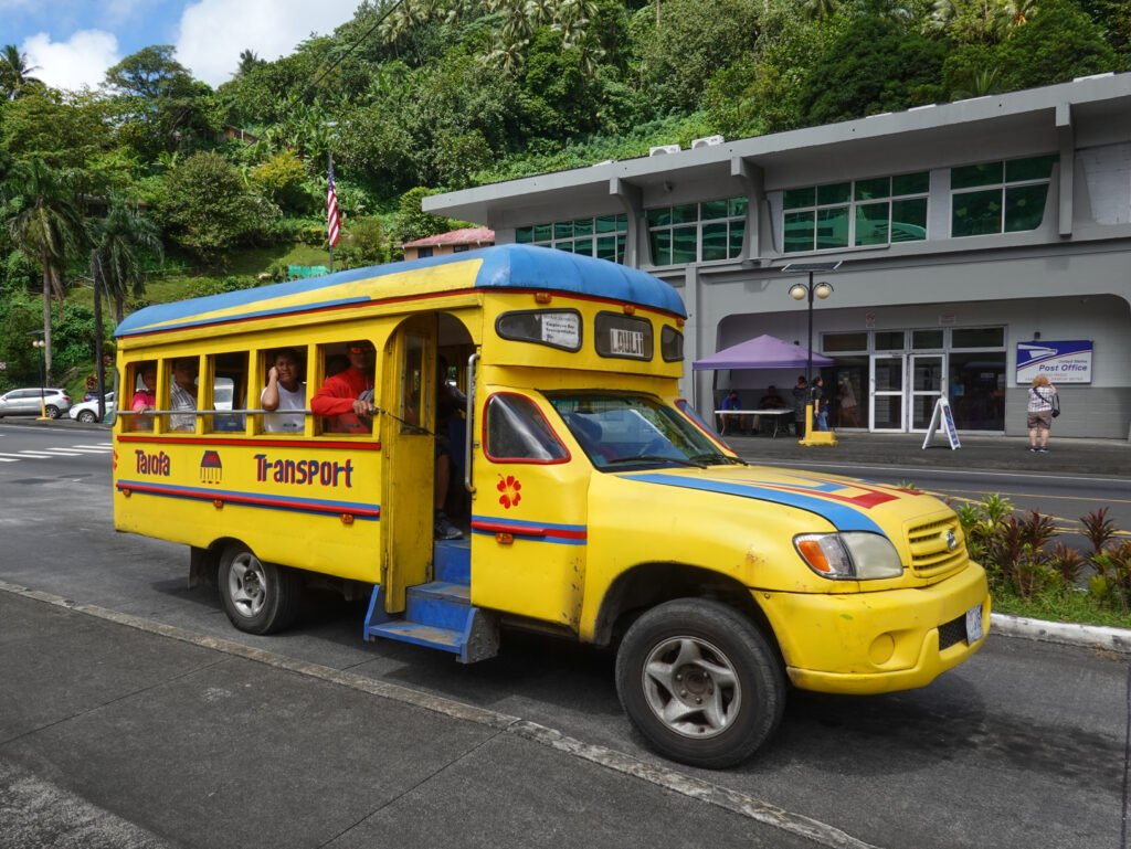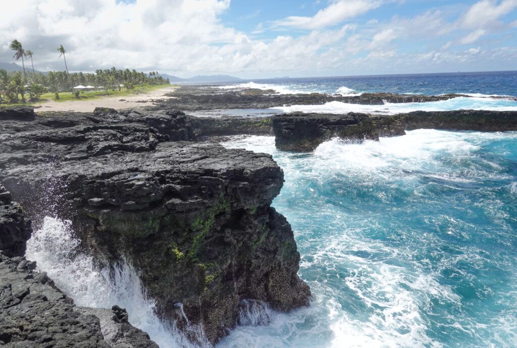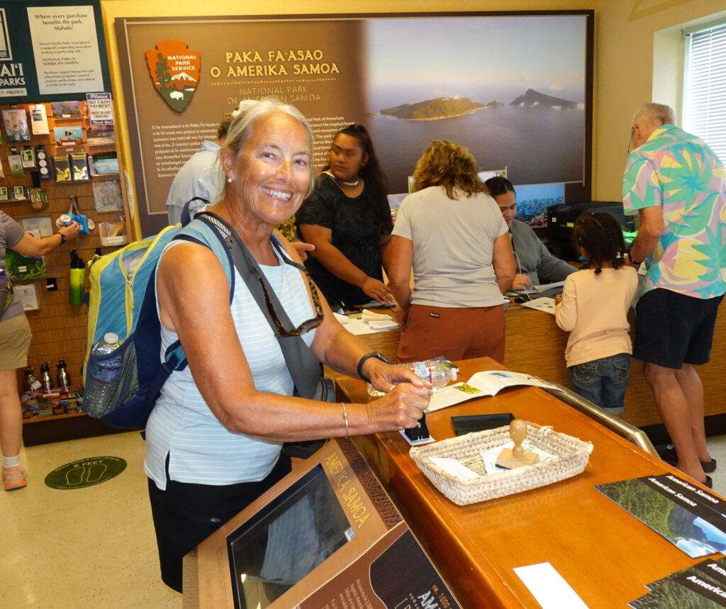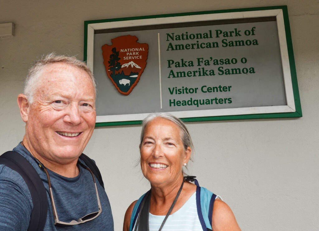 Yesterday as we rehashed the day with our German friends (Chris and Eckard) we decided to meet up for our day in Pago Pago to share a taxi for a tour of the island.  We meet on the back Terrace at 8:30 and by 9:00 are off the ship in search of a taxi driver. Mike and Eckard are pretty set on one so off we go!  But we all soon realize this is a nightmare!  The driver (Lio) speaks no English, does not seem to know what we mean by a tour and after 45 minutes we tell him to take us back to the ship. He is disappointed but it would have been a wasted day for us if we had continued on. It takes a bit of time and we come across a nice native man that see’s our dilemma and tries to help us. After a bit of time he comes back with Paul who speaks good English and we arrange an actual tour where he will narrate while he drives us to some of the highlights of the island. He begins taking us to some higher points where we get some great views and pictures but I think the highlight for all 4 of us was the Turtle and Shark Legend Site.  Just beautiful crashing waves and a sort of blow hole. The water absolutely stunningly blue. We also stop for pictures at Flower Pot Rocks, and the National Park (where of course Joanne got her passport stamp!