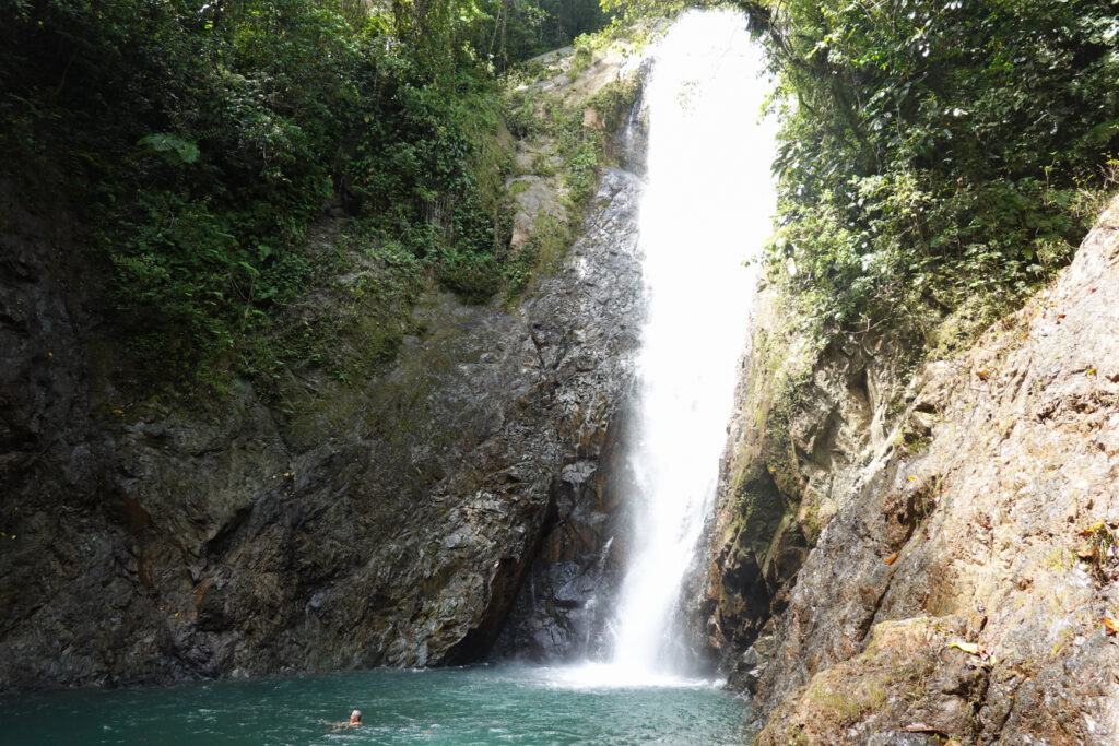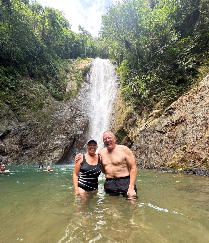 Once to the pathway to the falls there is a paved path (primitive) with ropes to hold on to up to the falls with a pool to swim in.  The path is not difficult for Mike and I and we both get into the pool (which is chilly).  We take the path back down and change into dry clothes.