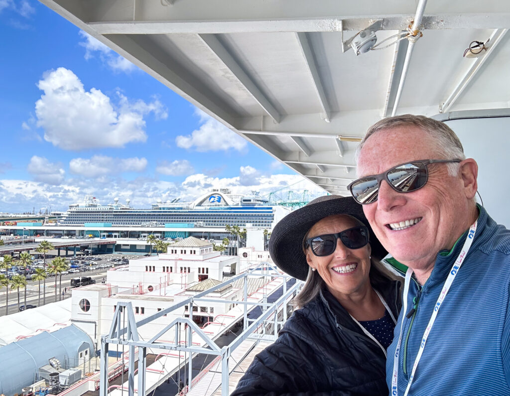 We decided to rent a car for the day to make the trip from Palm Springs to Huntington Beach, CA the morning of the cruise departure. The cost to rent the car was less than $60.00 and the car was electric so no gas costs and they threw in the charging fee. The plan worked perfect where we then UBERed from Huntington Beach Airport to the Cruise Terminal. It was very affordable, convenient, and we will definitely will use this strategy again in the future. Being Princess Platinum Members we boarded with the first group and were in our cabin by 1:30PM…