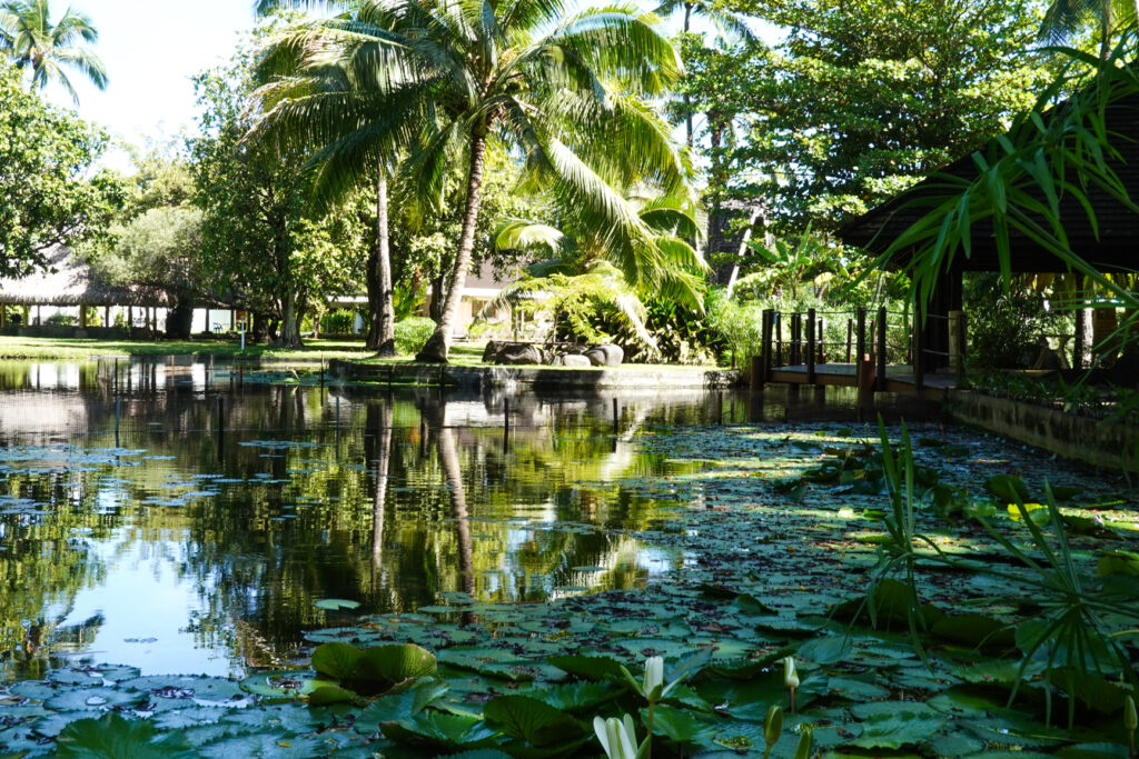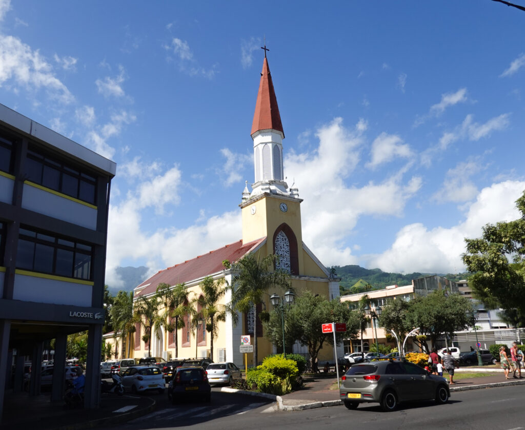 Once we finish with the marketplace we had heard of a French Polynesian garden in the heart of the city not far from the market. On the way to the garden, we pass an historic cathedral.  The garden is pretty easy to find (it is right next to McDonald’s!) and it is a peaceful walk right in the middle of the city!  Koi ponds and lots of garden flowers. PLUS- very clean toilets for public use!  No entry charge.  We finish at that park and walk directly into another city park; though this one is not as nice and has some homeless people just hanging out.