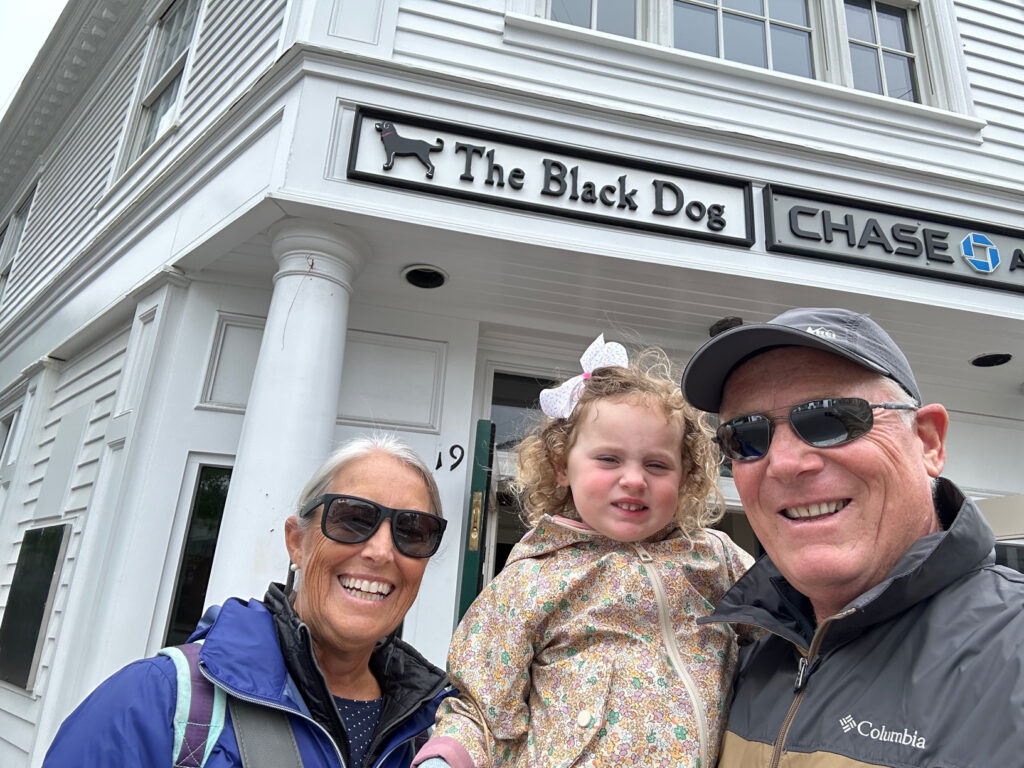 We decided that we would leave Palm Springs about a 10 days early and fly across the country to Boston so we could spend the week before the big day vacationing with Caitlin, Bruce, Mac, & Dakota at the Dew’s favorite place Chappaqudick, MA (Chappy). Chappy is near a dear to the Dew’s as they originally met on Martha’s Vineyard years ago and then were married there in 2019. Each year they visit the remote island of Chappy for fishing, beach , and just relaxing family time. They have invited us for years but our schedule this year just worked out that we could spend a few days there before heading to the wedding in New York. It’s funny as we spent several years vacationing on Martha’s Vineyard back in the 80’s until it got overly crowded and we have pictures of Caitlin there (around the same age Mac is now) from those days.