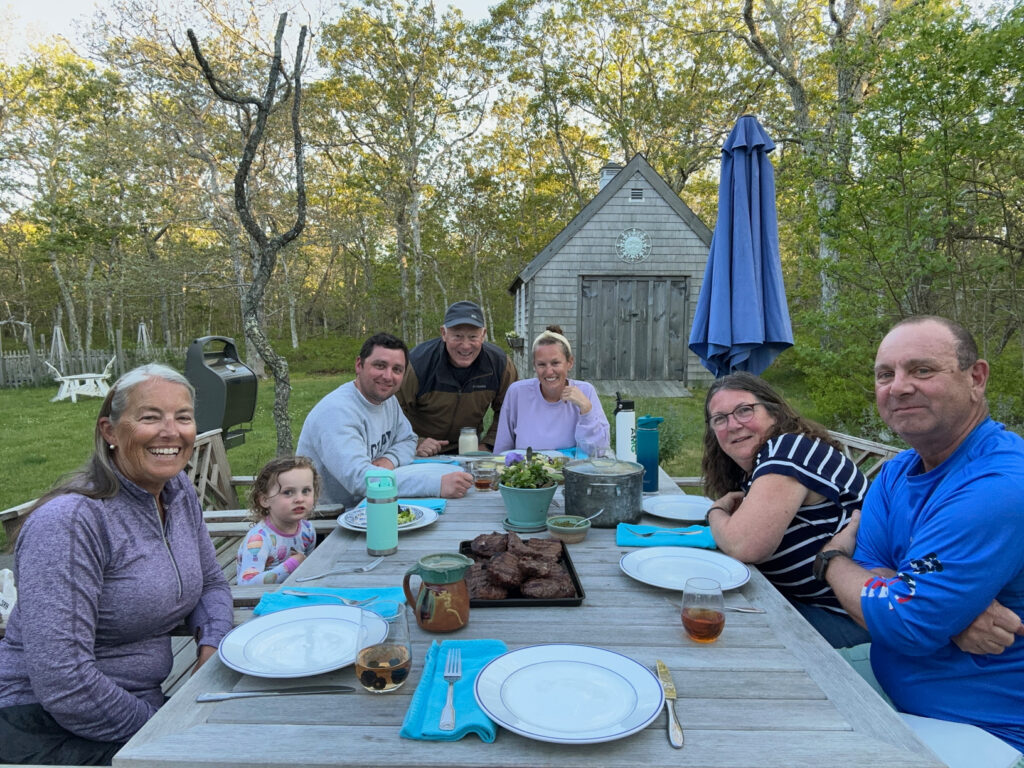 Our last day on Chappy included the arrival of Bruce’s parent from Webster, NY. It was nice to connect up with them again and share a yummy dinner on the deck after enjoying another beach day. Special Thanks to Bruce Senior for cooking some excellent steaks on the grill!