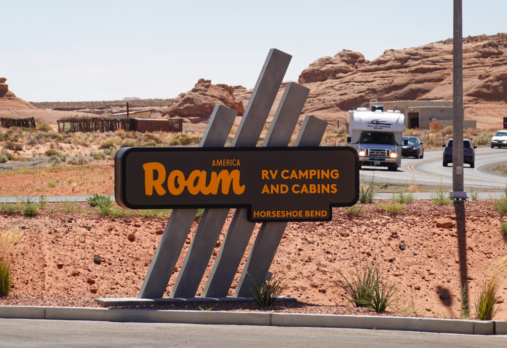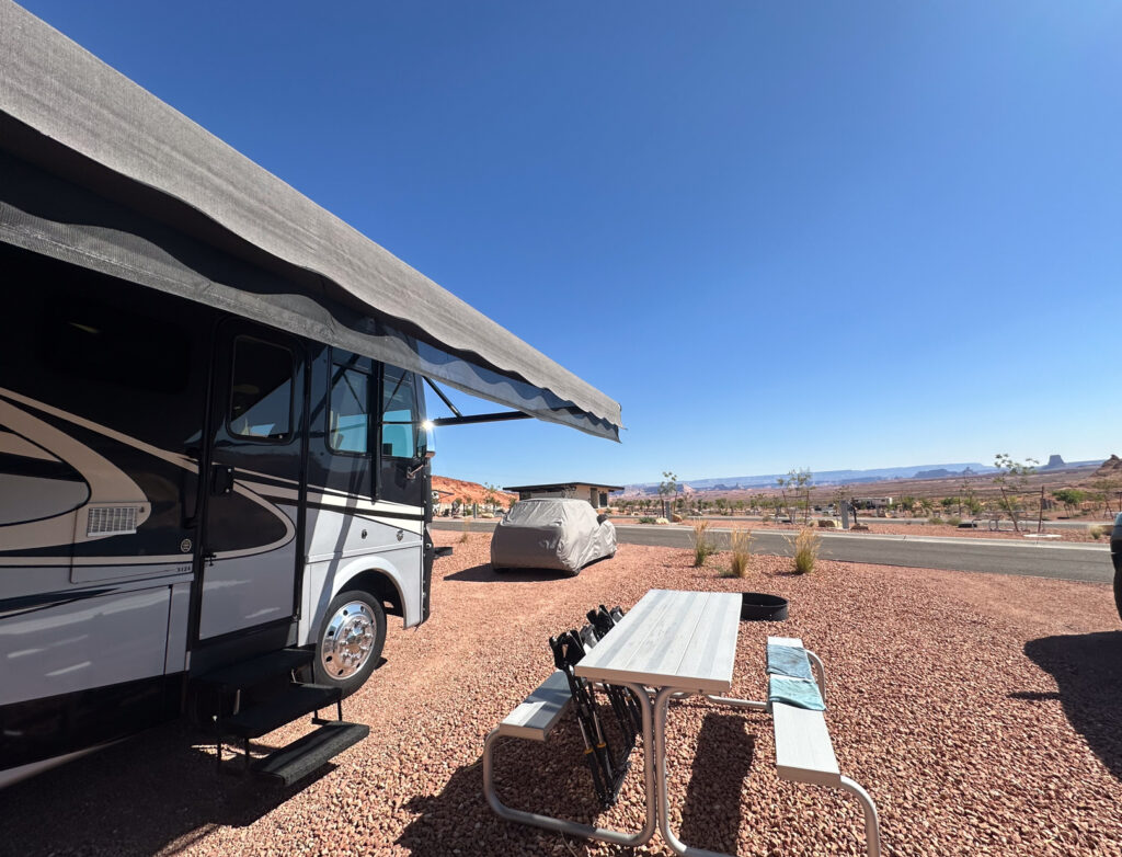 Originally we had thought we would stop somewhere around Flagstaff AZ but once we got there and realize we aren’t very far from Page we called ahead and can get into ROAM America Campground a day early so decide to push on. Upon arrival we find that most sites are unlevel and it takes a good hour to finally get a site we can get level on. Because of this issue the manager is very apologetic and extends the extra night for free because of the inconvenience! Great customer service!