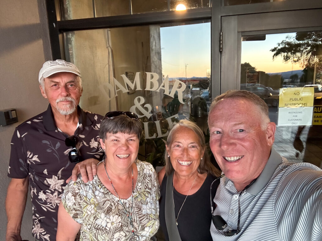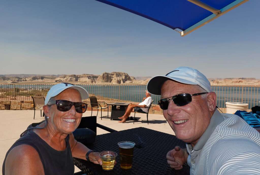Later this morning Joanne touches base with Judy and Harold Casterline who we had hosted with at Oscar’s Scherer State Park in Nokomis, Florida back in 2018. Since then they have settled in Page so Judy could teach at the High School there. We will meet them for dinner at The Dam Bar. We have a little time to take a quick dip in the pool at ROAM before getting ready for dinner and meeting our friends. It was fun catching up and the restaurant was fun/unique.