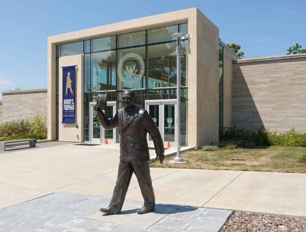 Today we are continuing our drive East to Independence, Missouri. Our plan is to visit the Harry Truman Presidential Library. Harry Truman is another man that started with humble beginnings and through a chain of events found himself ascending to the Office of the President with the death of Roosevelt in the later days of WWII. Few men have been given the tough decision he faced to try to end the War and no man has ever given the decision to actually use an Atomic Bomb which he did twice on the Empire of Japan. A controversial moment in time, though it did save countless lives and quickly brought the War with Japan to an end.