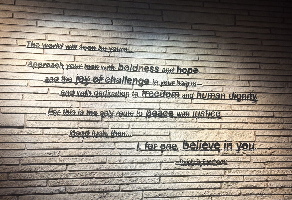 The little historic town of Abilene, Kansas is really a step back in time to a simple way of life. Abilene’s favorite son is of course Dwight D. Eisenhower. Raised here from simple beginnings Eisenhower rose to prominence in the Military and Ultimately became the “Supreme Commander ” of Allied forces during WWII. His leadership, brilliance, steadfastness, organization, & Military experience were all instrumental in the ability to stop Hitler and turn the War around with the Landings on D-Day in Normandy. Without question he was the right person for the huge task in spearheading the defeat of Nazi Germany. Although an incredible Military Commander he is most well known as a “Champion for Peace”. Following WWII he entered politics and was a beloved 34th United States President. In addition his famous humanitarian wife Maime became Ike’s wife on July 1, 1916 and together they had a remarkable impact of our lives and futures…