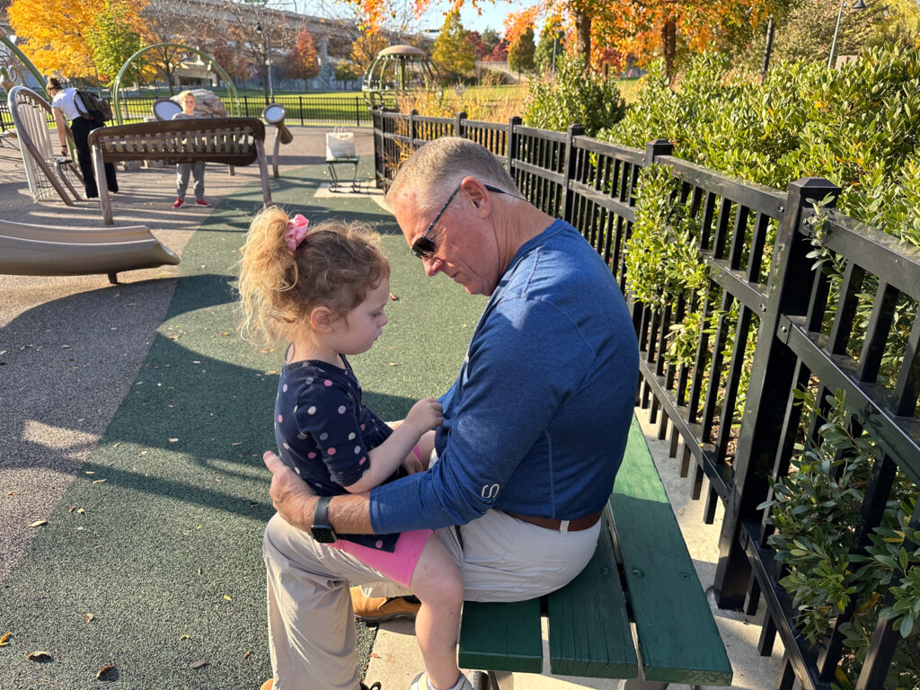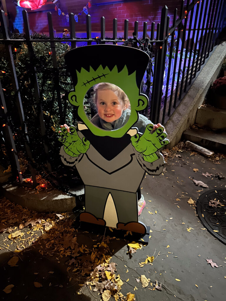 On our agenda most days was taking in the Fall colors, the Fall smells, the cool crisp nights, and of course the Halloween decorations. Most days we had fun with Mac at the playground, after daycare was over, walking her Golden Retriever “Dakota”, and breathing in the fall season.