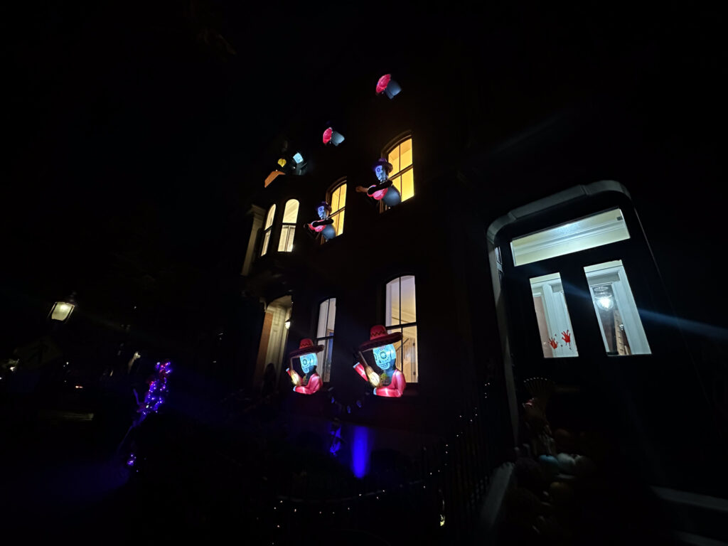 As Halloween neared we spent several evenings walking the decorated homes of Charlestown, The town square, and then attended the Charlestown Halloween Extravaganza. Mac had to be dressed up. Joanne, the consummate teacher, had ” I Spy” sheets prepared, and Mike did a lot of stroller pushing up and down the hills .