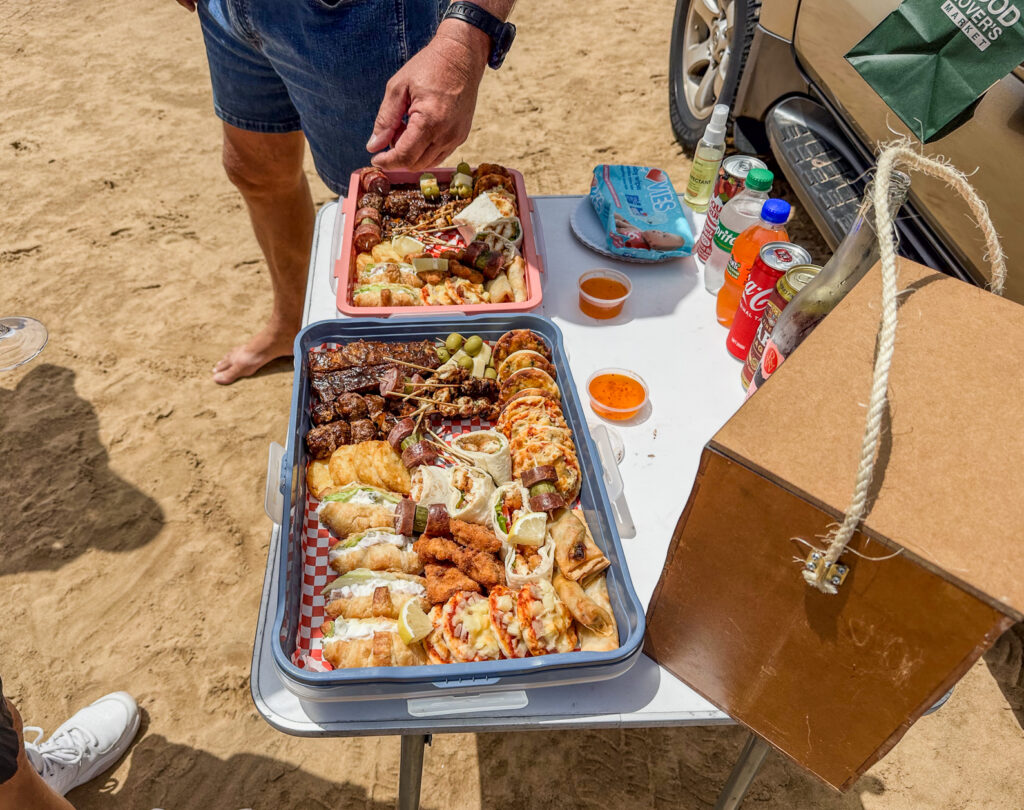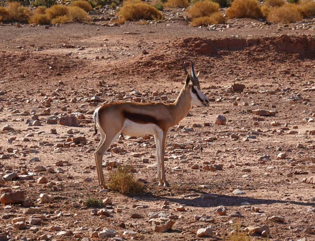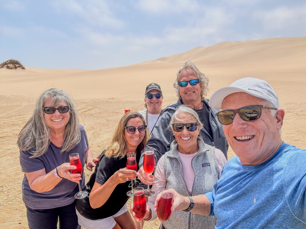 Once we finished at Sandwich Harbor we started the inside dune drive away from the coastline which was like riding a roller coaster in a jeep! We couldn’t believe how steep the downhills were! And the soft sand…!! We did this for quite awhile before arriving at a place to stop for our Champagne lunch they had packed for us. They brought out a table, tablecloth, and a beautiful spread of food. With lots of time to enjoy, take pics and talk and reflect on the day so far. It was an amazing spread in the middle of the desert!