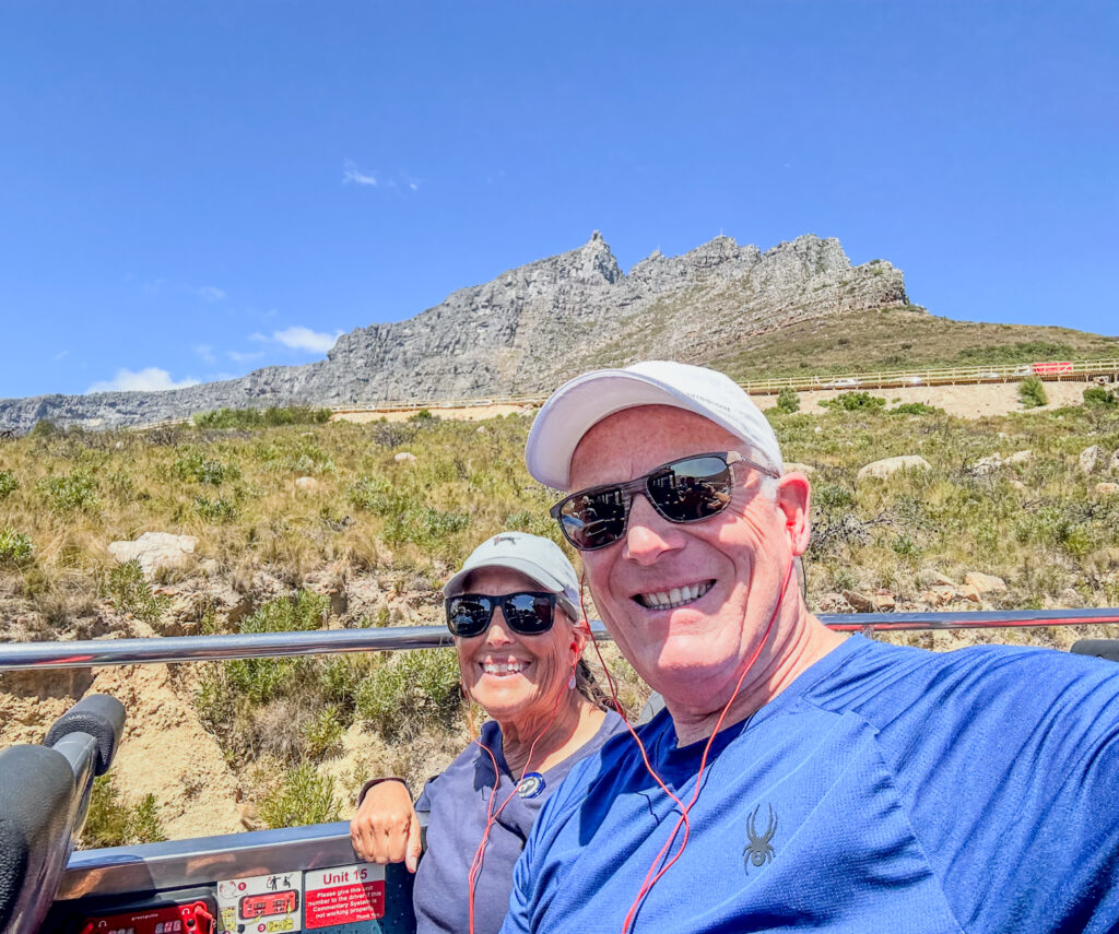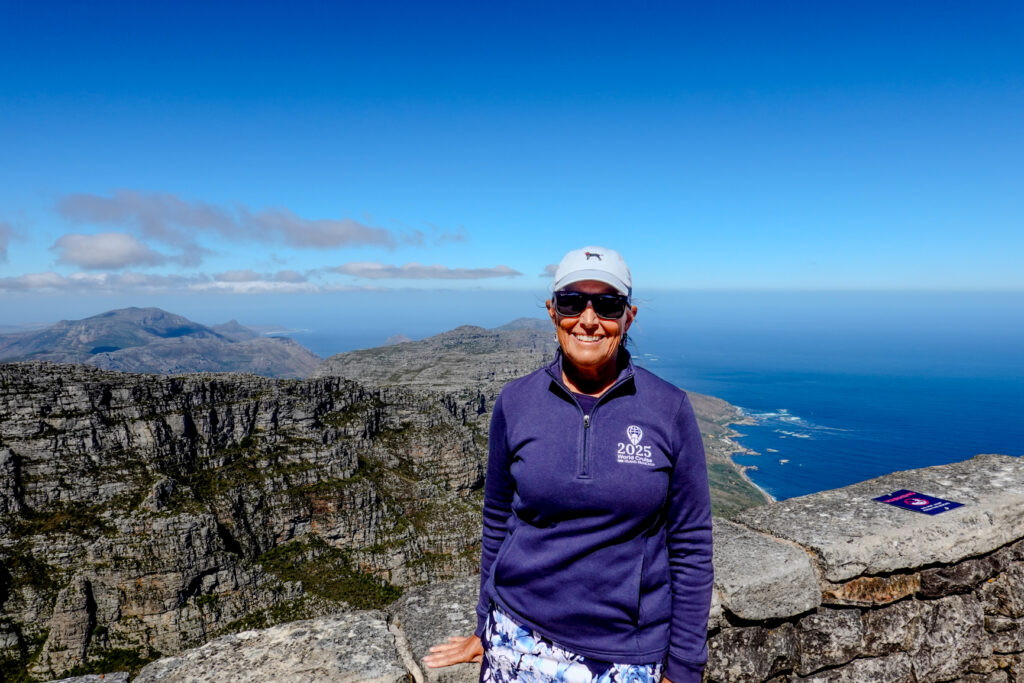 Bundled up for that spectacular view from the TOP!Joanne sporting her new 2025 1/4 zip World Cruise jacket…Just can’t get enough of the views on Table Mountain…Wow!