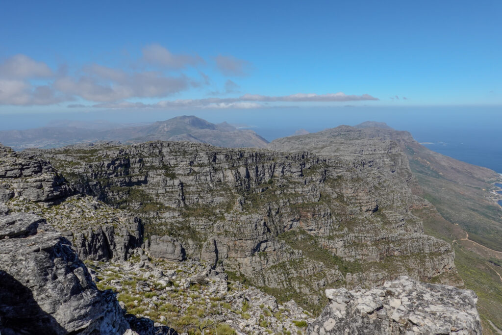 We can spend as much time as we want up at the top so we wander around to all different access points to get amazing views from all areas of Cape Town and the surrounding areas. The beaches as well as the mountains are spectacular! At the top there is a place where you can arrange to repel down a bit but not all the way to the bottom and then must climb back up along a hiking path. The son we chatted with while in line did do that and he said it was great!