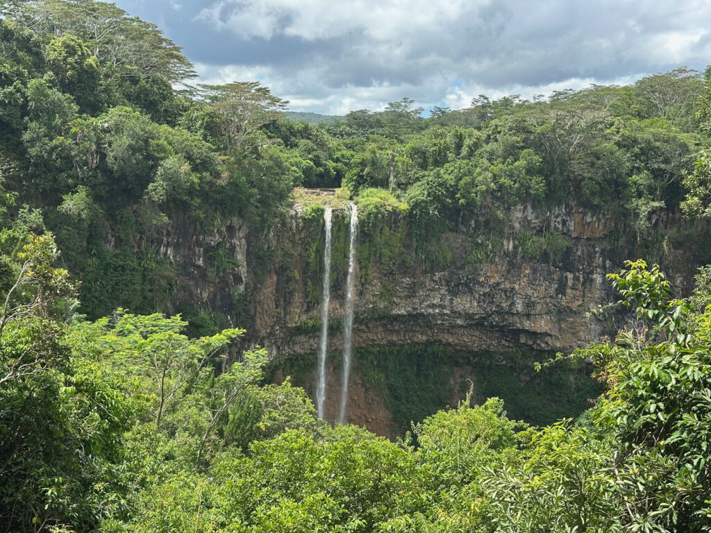 Next up is the tallest single-drop waterfall in Mauritius at about 100m high, the Chamarel Waterfall is a striking piece of nature standing amid dense vegetation. Fed by the waters of three distinct streams pouring into Saint Denis River, it has a powerful rush with a peak flow rate in excess of 40,000 m³ per minute. Traffic is tough here as it’s clearly a big tourist stop but once parked we walk up to two different viewing area to see the waterfall.