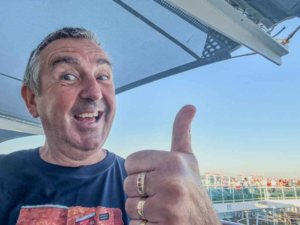 Serendipitously, a week later Joanne recognized the victim and his wife walking on deck 15 and I approached them to introduce my self and inquire how they were doing. The wife immediately recognized me and embraced me in a hug with tears. I can honestly say Watson & Elizabeth from Australia via Scotland were two of the nicest, sweetest people we have ever met. It was a tragedy what happened to them, through no fault of their own, and it was a travesty how the Cruise line handled the situation and treated them. We know he has had several surgeries since and is still dealing with the fallout of this terrible attack. We continued to connect with them several times during their time on the boat and made sure they had our contact information. Most importantly we hope he will be ok long term and we sincerely hope they receive justice from the cruise line and the assailant. In our entire life neither of us had ever witnessed such a malicious physical attack and hope we never do again. Our thoughts and prayers continue for Watson & Elisabeth…
