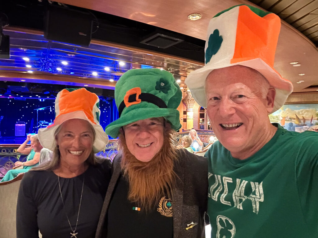 Departing Namibia we had several sea days before last African stop of Cape Verde. During that time was our 2025 Island Princess St Patricks Day Celebration. Everyone one on the ship got into the mood of green with dress, music, food, beverages, and just flat out fun… Paddy O’ Reilly was playing in our favorite bar on-board “The Wheelhouse” (Actually it was our guitar player friend Danny Rembrandt but boy he did a terrific job with classes like “Whiskey in the Jar, Galway Girl, and so many other Irish Classics).